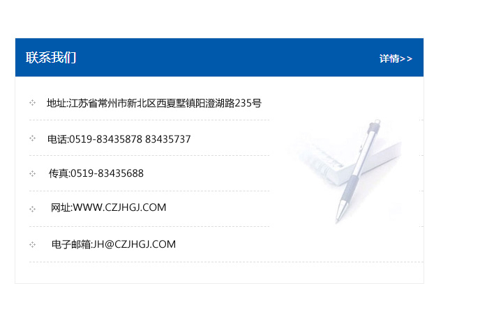 地址:常州市新北區友邦商務大廈1幢16、17層  電話:0519-85101652  傳真:0519-85112595  郵編:213022  網址:www.cz-jiayue_cn.tcsanben.com  郵箱:xiajifengaa@163.com
